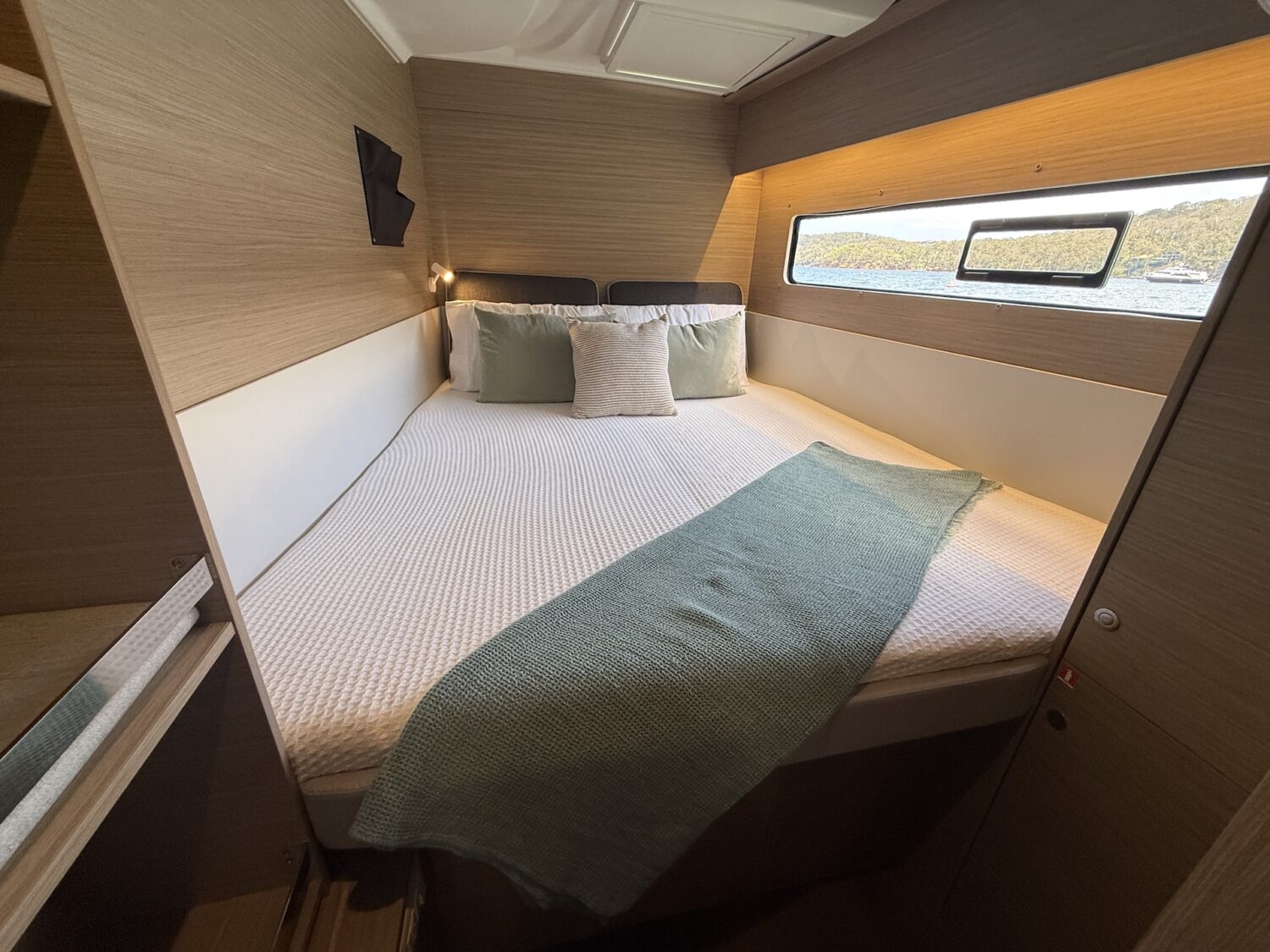 “As soon as we got onboard, we were sold, the sliding doors, the 360-degree view, and that big window by the kitchen sink made it feel like an apartment. The layout just works. There’s so much storage, the cabins are spacious, and the galley being up top makes a huge difference.
