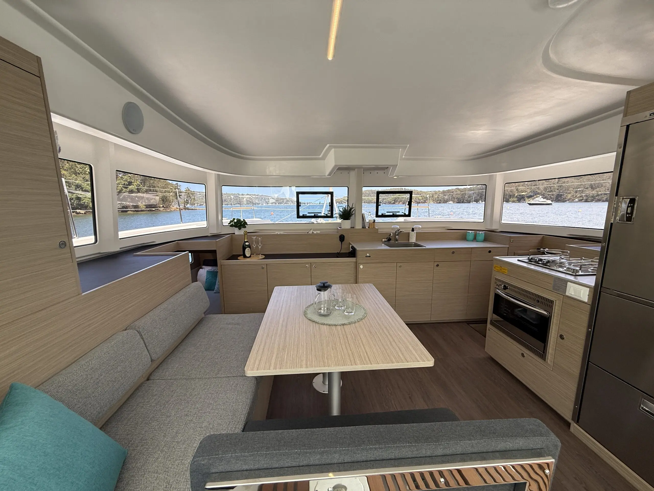 “As soon as we got onboard, we were sold, the sliding doors, the 360-degree view, and that big window by the kitchen sink made it feel like an apartment. The layout just works. There’s so much storage, the cabins are spacious, and the galley being up top makes a huge difference.