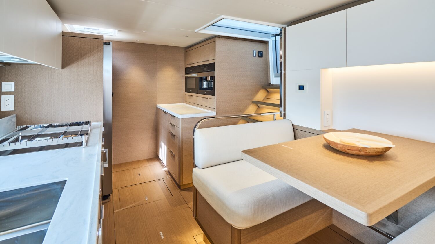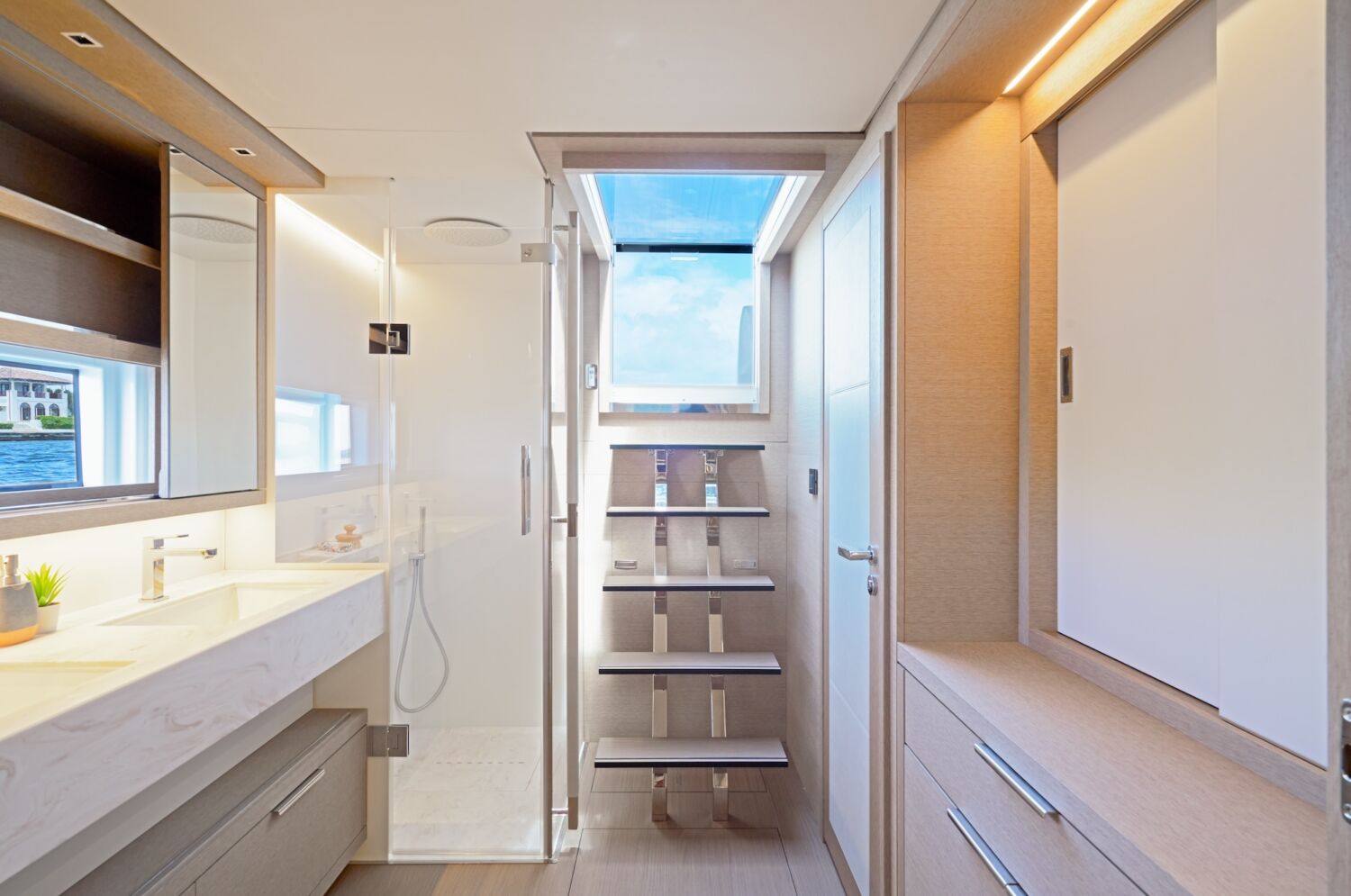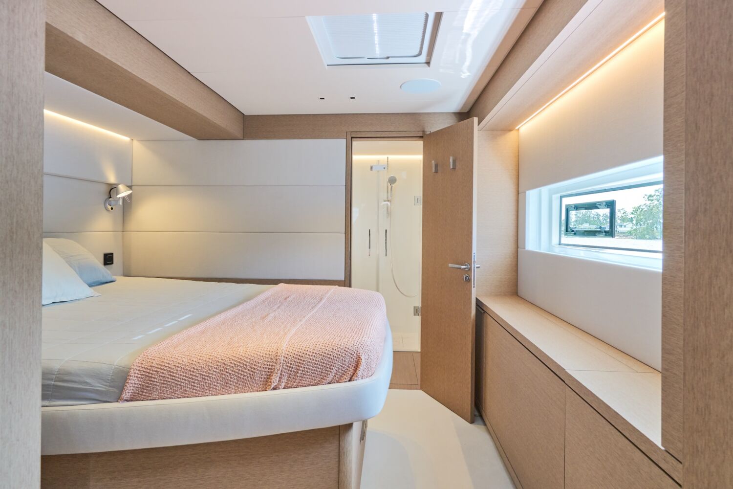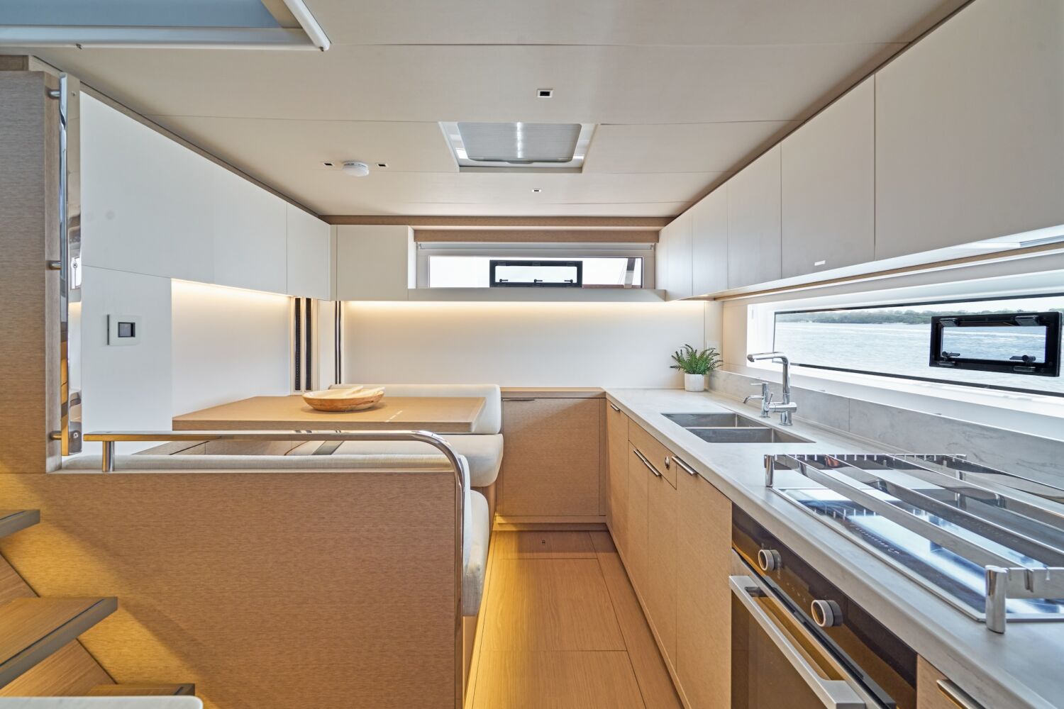 “As soon as we got onboard, we were sold, the sliding doors, the 360-degree view, and that big window by the kitchen sink made it feel like an apartment. The layout just works. There’s so much storage, the cabins are spacious, and the galley being up top makes a huge difference.