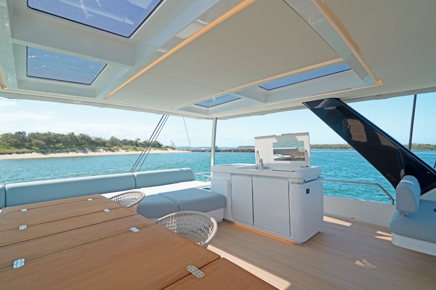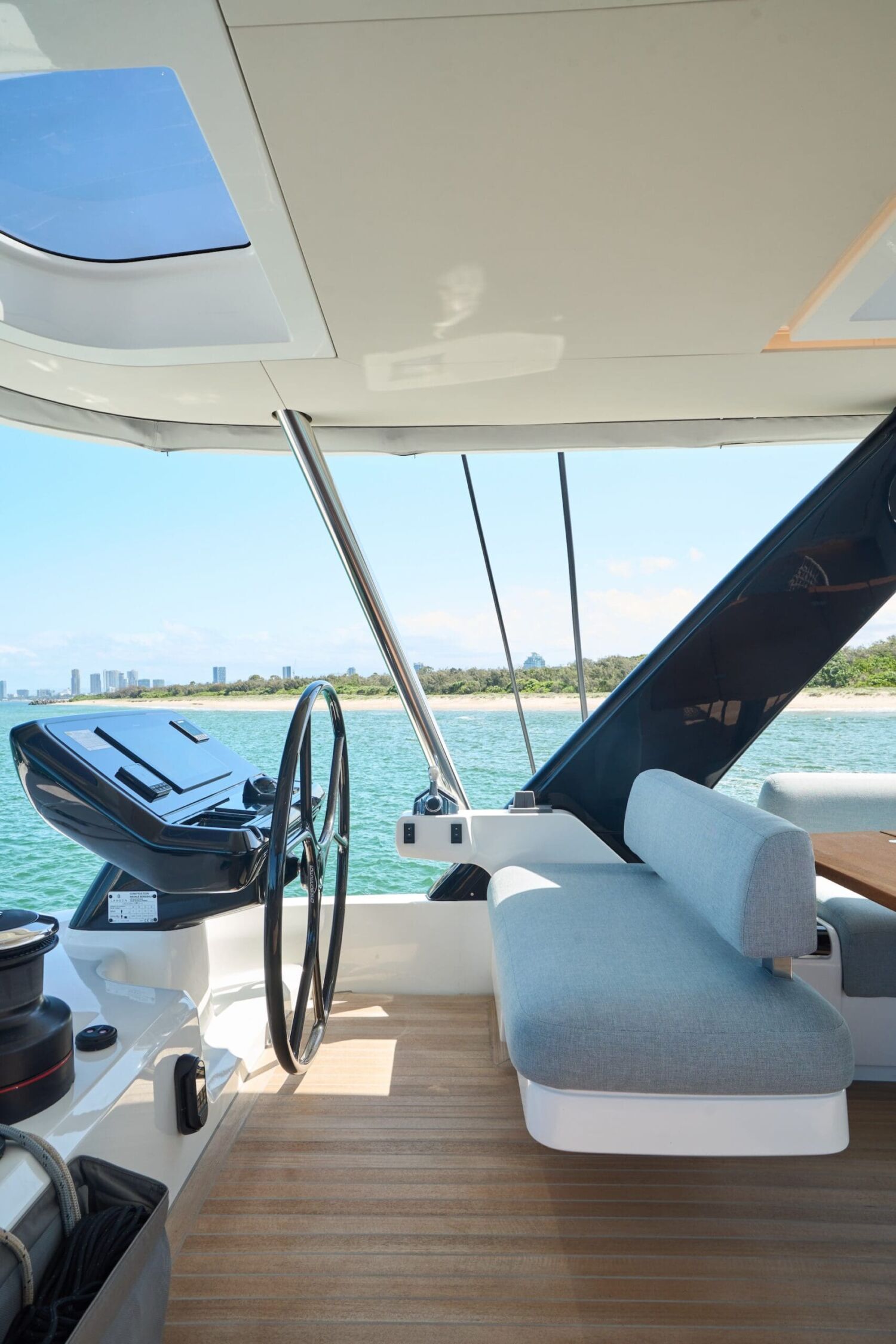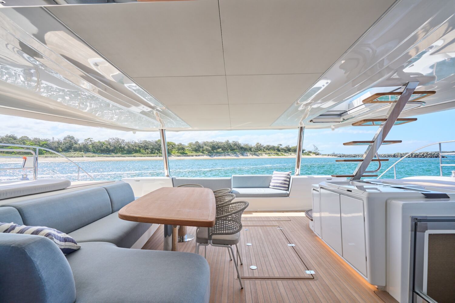 Of all the tweaks and changes in the design and layout of large cruising catamarans, surely the most innovative has been the addition of the flybridge steering station and “upstairs” lounging space.