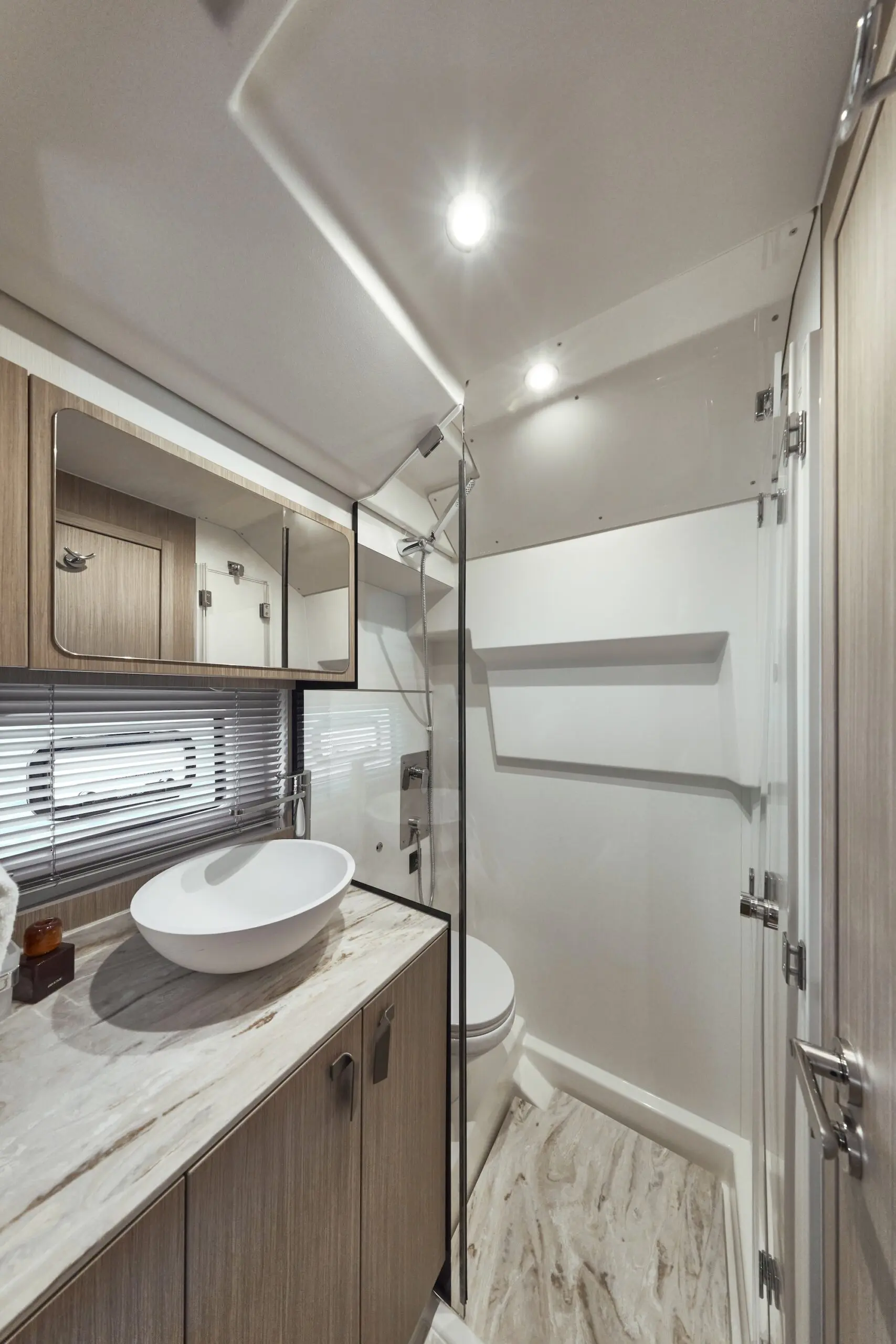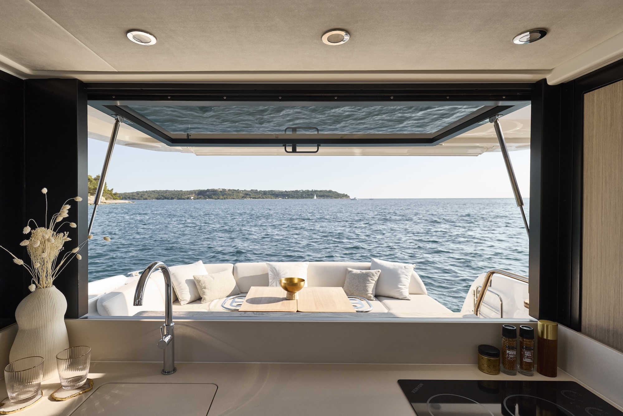 Smart ergonomic touches and improved connectivity create an intuitive and elevated onboard environment. Whether cruising locally or setting out for extended adventures, these flybridge motor yachts offer exceptional liveability, smart storage, and seamless indoor-outdoor flow.